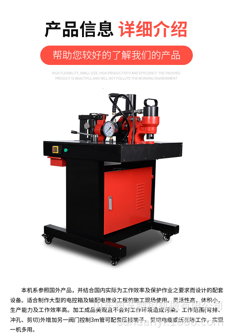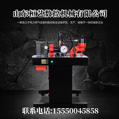 描述:本機安裝有沖孔、剪斷、折彎三個加工工位,主要功能為加工不同規格的銅、鋁母線。工作時,需要選用相應的加工工位,就能方便快捷的對銅、鋁排進行剪切、沖孔(圓孔、長圓孔),折平彎、立彎、U型彎,壓花、壓平、扭麻花、壓電纜接頭等不同的加工。?